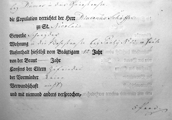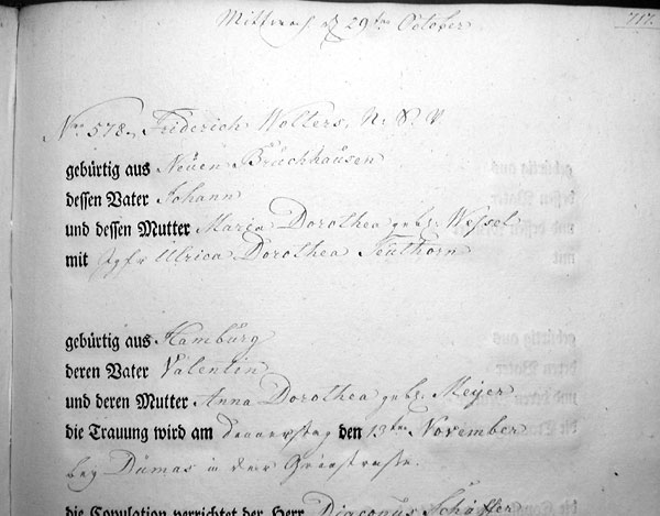 Am 29. Oktober 1794 wird die folgende Trauung in das Wedde-Buch eingetragen: