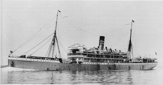 Reiherstiegswerft Hamburg, 6268 BRT, 125,4 x 15,5, 2800 PSi, 12 Kn, Passagiere: 95 I., 60 II., 80 III. Klasse, Besatzung 125. 16. Aug. 1906 Stapellauf 02. Nov. 1906 Ablieferung