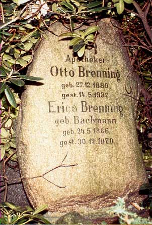 Erika Bachmann (24.5.1886 - 30.12.1970) war in 2. Ehe mit dem Apotheker Otto Brenning verheiratet, der bereits 1937 an den Folgen eines Jagdunfalles starb.